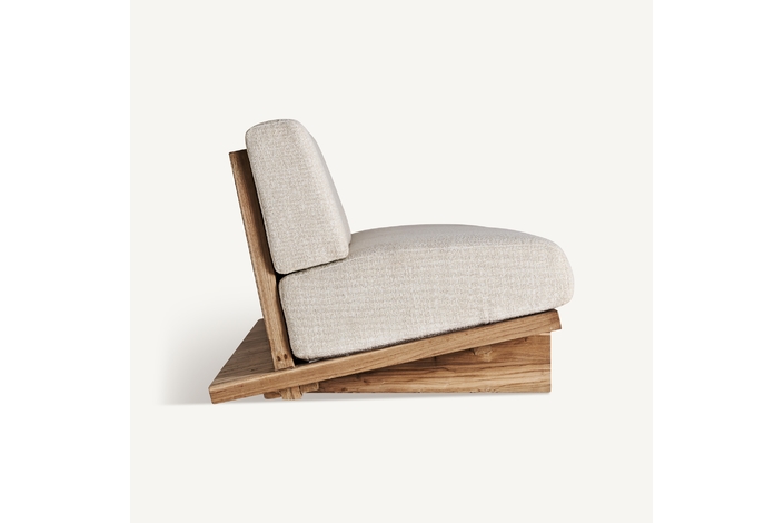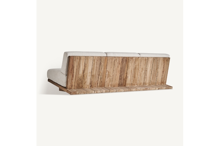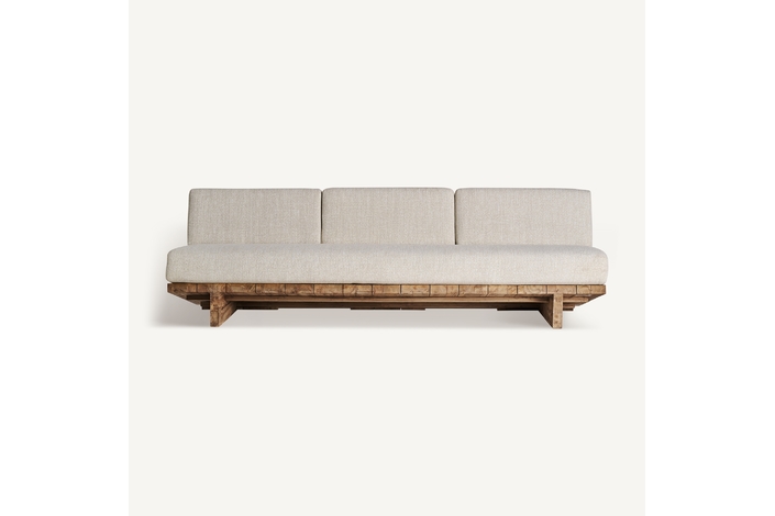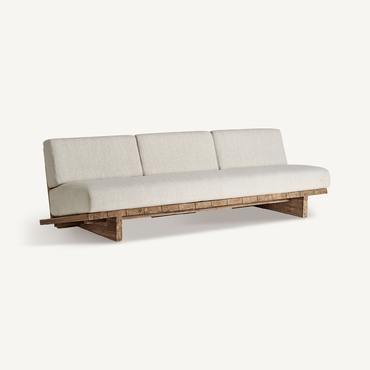 El equilibrio perfecto entre diseño limpio y confort. El sofá Pure, en madera de teka reciclada en color crema y tapizado con polipropileno reciclado, es ideal para espacios relajados y modernos. Desenfundable y desmontable, es un tributo a la funcionalidad responsable.