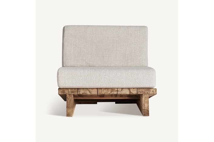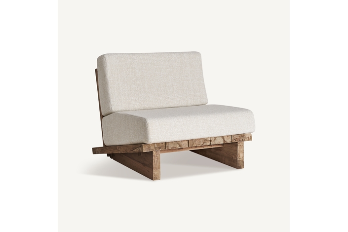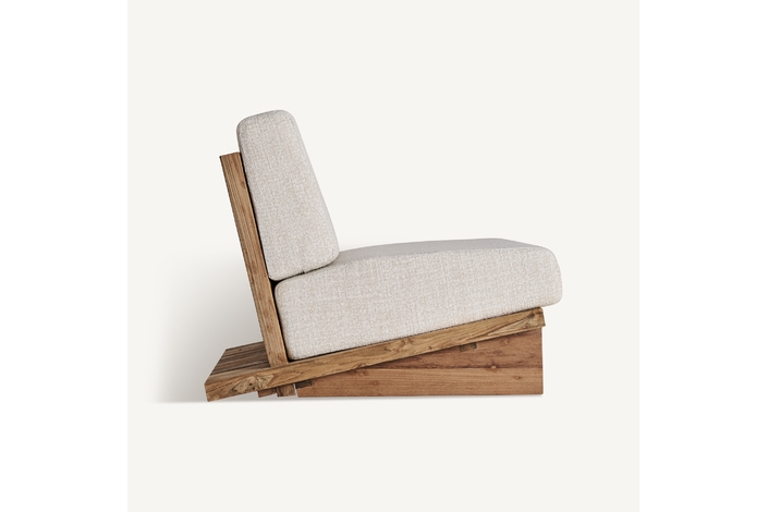 Minimalismo con esencia. El sillón Pure está fabricado en madera de teka reciclada en tono marrón claro y tapizado con polipropileno reciclado en blanco. Su diseño desenfundable lo hace tan práctico como elegante. Una declaración de sostenibilidad con un toque escandinavo.