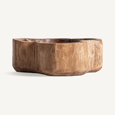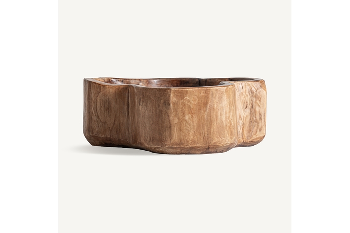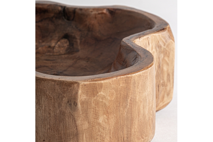 Centro de mesa, fabricado en madera de teka en color marrón.