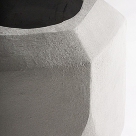 Tinaja, fabricado en cemento en color gris, combinado con fibra de vidrio.