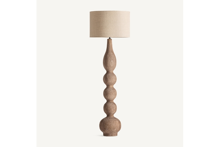 Lámpara de pie, fabricado en madera de mango en color marrón, combinado con yute en color crema.