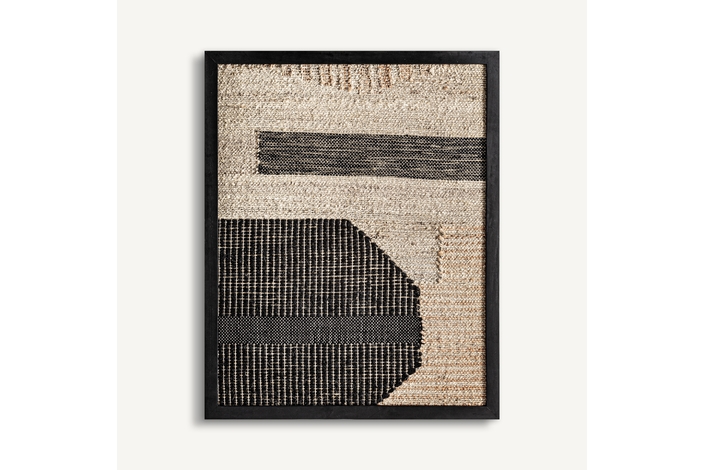 Cuadro, fabricado en madera de mango en color negro, combinado con yute en color beige.