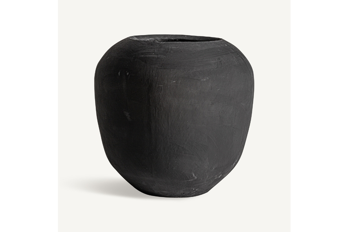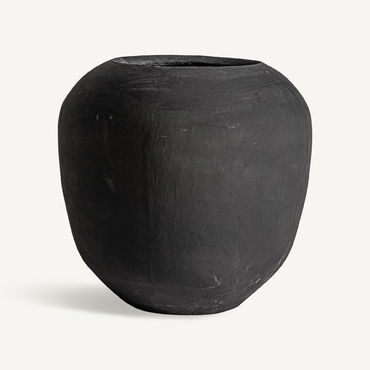 Tinaja, fabricado en cemento en color negro, combinado con fibra de vidrio.