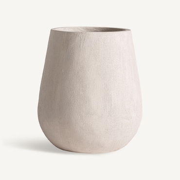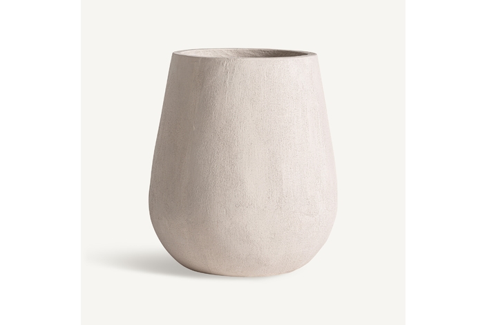 Tinaja, fabricado en cemento en color beige, combinado con fibra de vidrio.