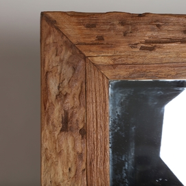 Con su acabado envejecido y marco de madera de teka, el espejo Lux aporta textura y autenticidad. Una pieza de VICAL que transforma el ambiente con elegancia.
