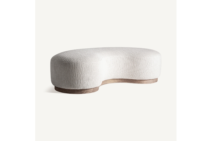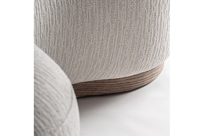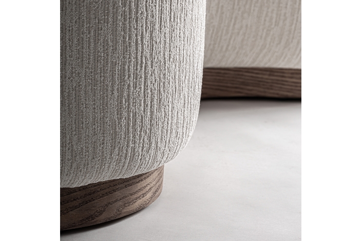 Sofá, fabricado en poliéster en color blanco roto, combinado con espuma y madera de caucho en color marrón.