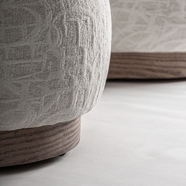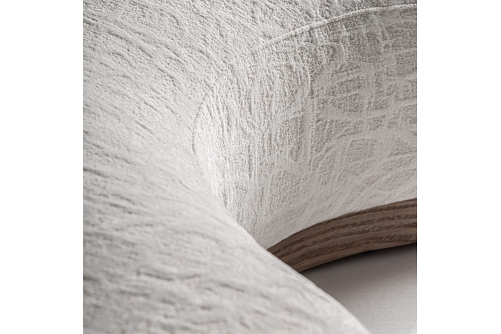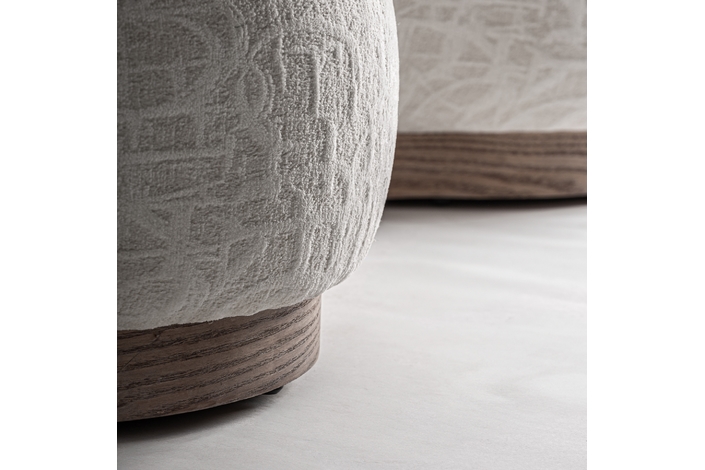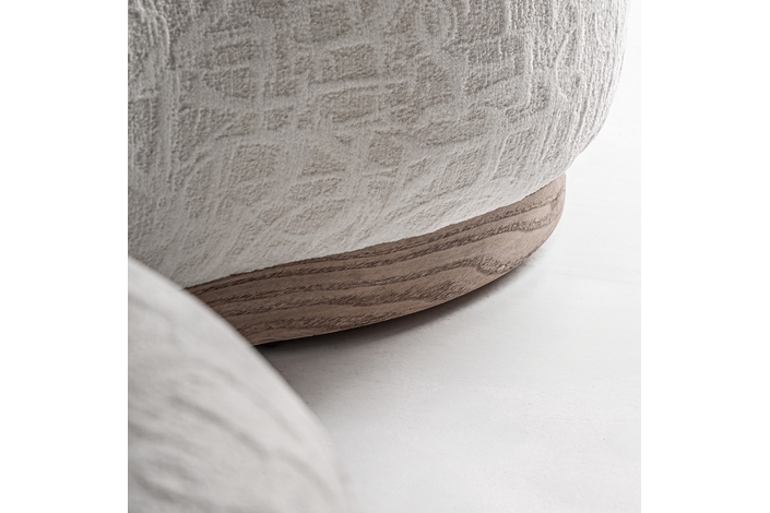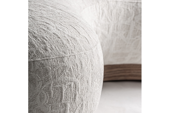 Sofá, fabricado en poliéster en color blanco roto, combinado con espuma en color marrón y madera de caucho.