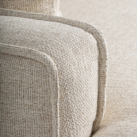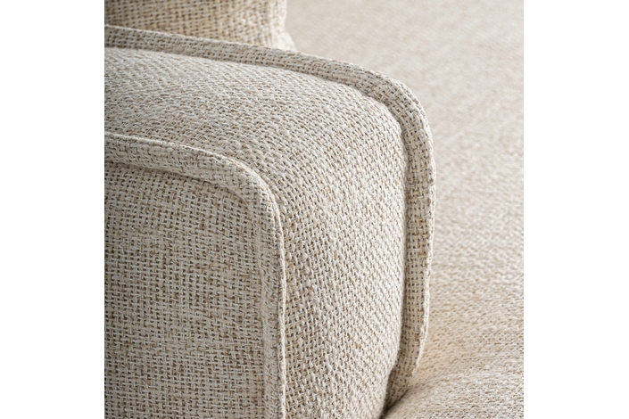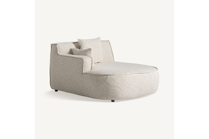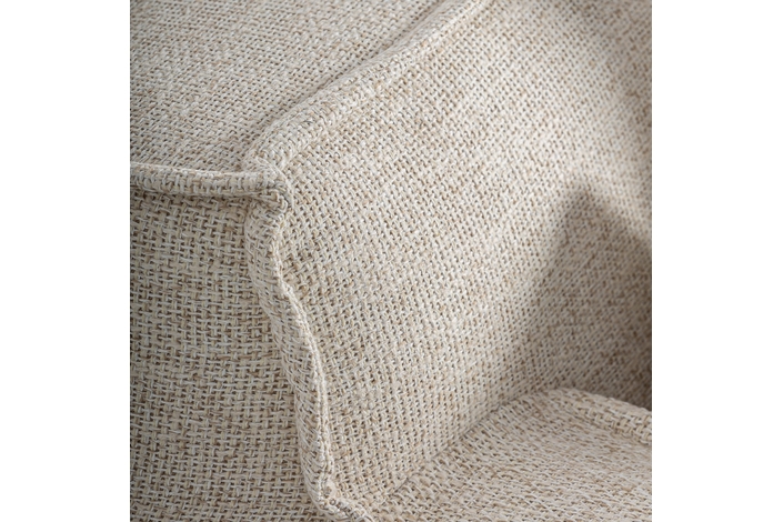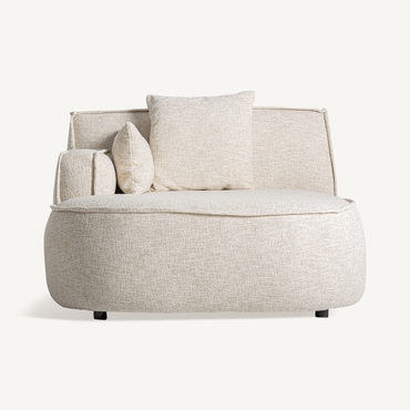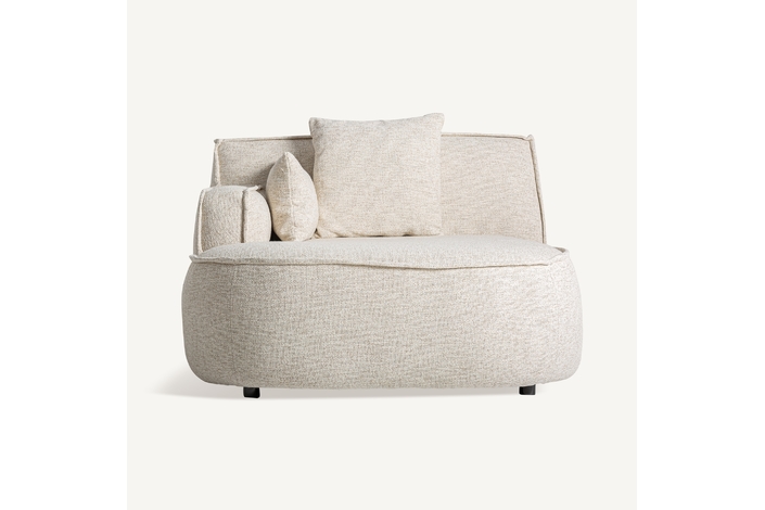 Módulo sofá esquinero, fabricado en poliéster en color beige, combinado con espuma y aluminio.