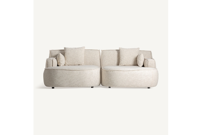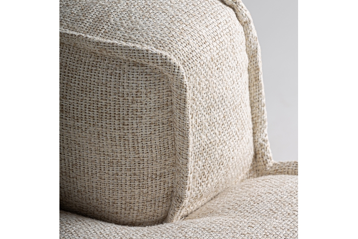 Módulo sofá esquinero, fabricado en poliéster en color beige, combinado con espuma y aluminio.