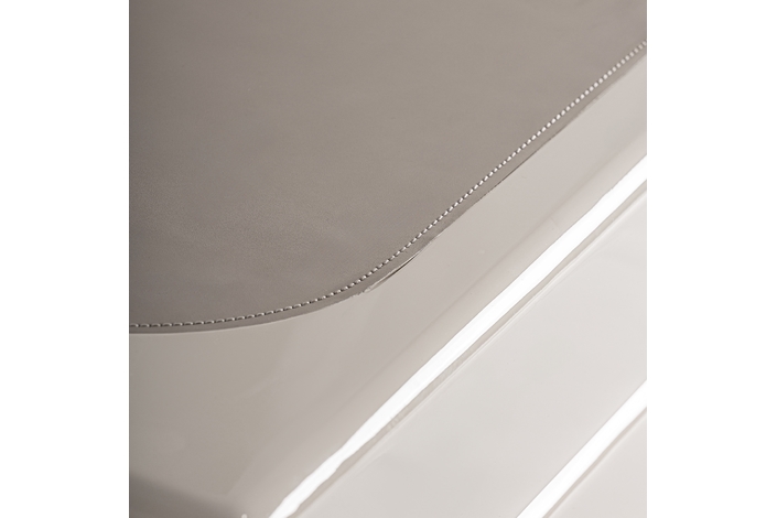 Mesa de centro, fabricado en madera dm, combinado con poliuretano en color beige en color marrón.