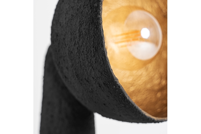 Lámpara de pie Lierop de estilo contemporáneo, fabricado en resina en color negro, combinado con metal en color oro.