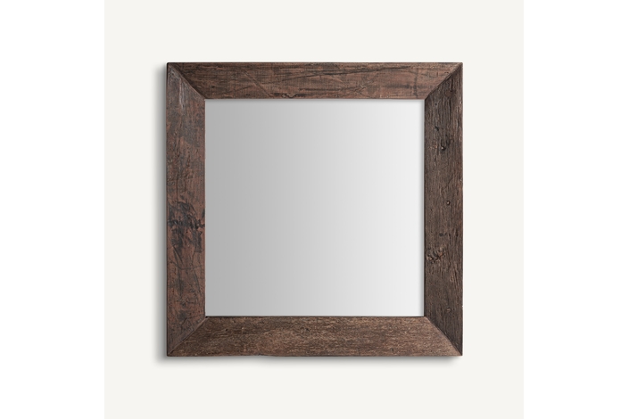 Espejo, fabricado en madera de pino reciclado en color marrón, combinado con espejo.