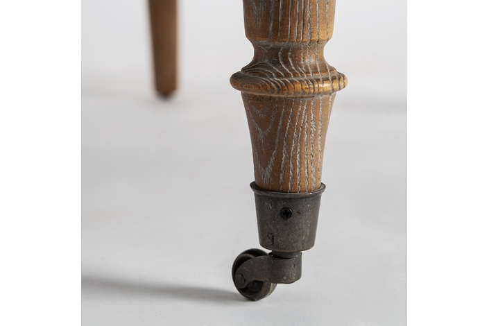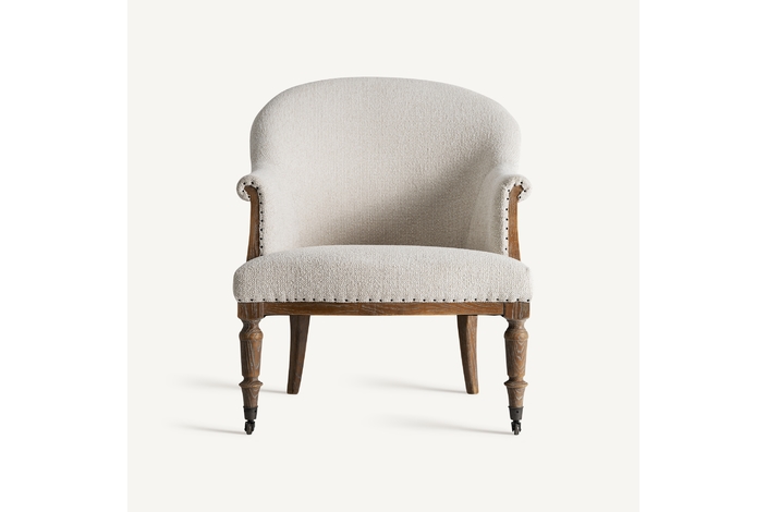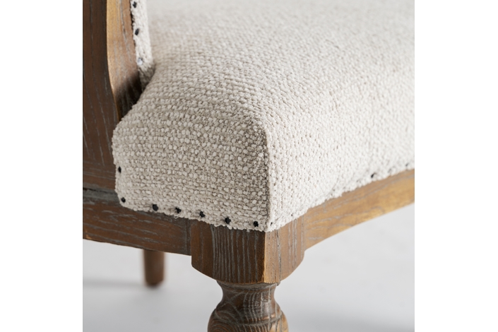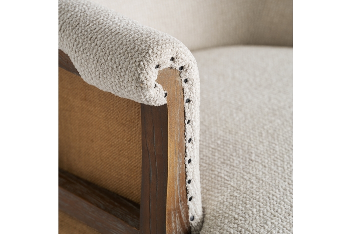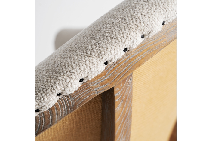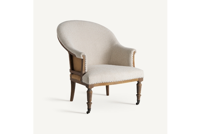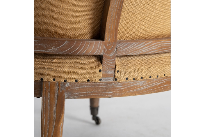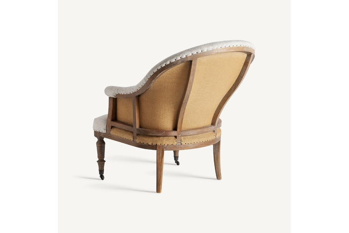 Sillón, fabricado en madera de fresno en color marrón, combinado con loneta en color beige y yute.