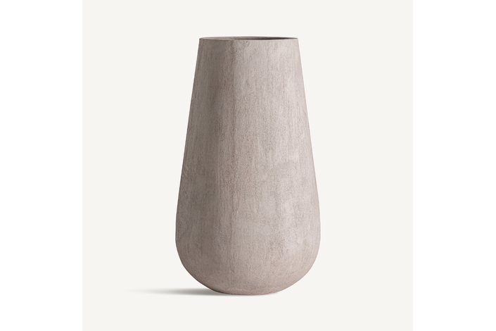 Tinaja, fabricado en cemento en color blanco roto, combinado con fibra de vidrio.