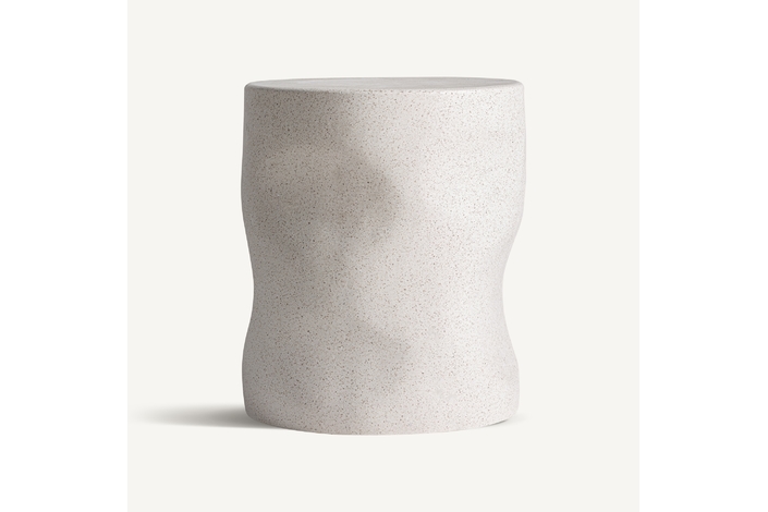 Mesa auxiliar, fabricado en terrazo en color blanco roto.