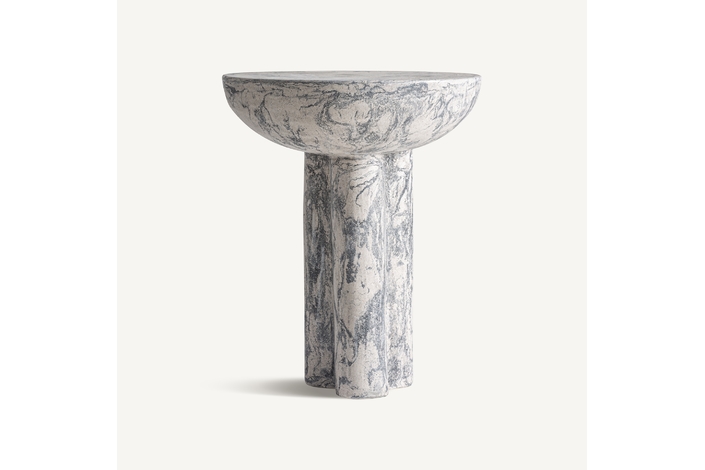 Mesa auxiliar, fabricado en terrazo en color marrón.