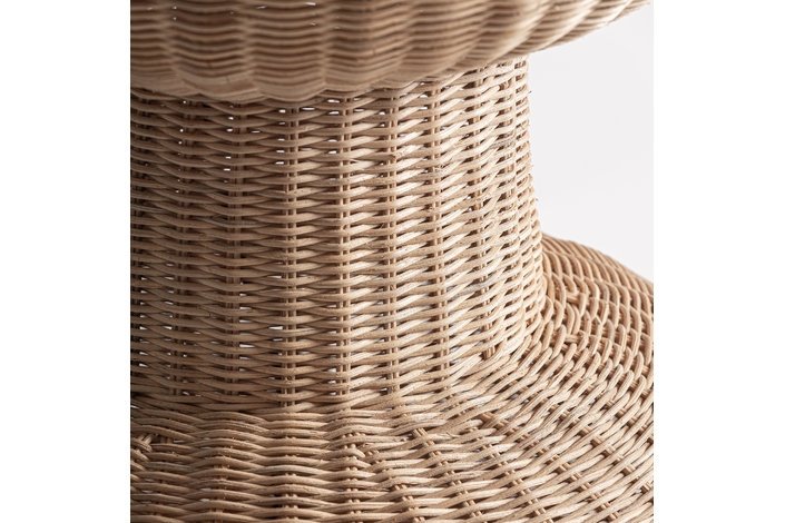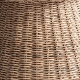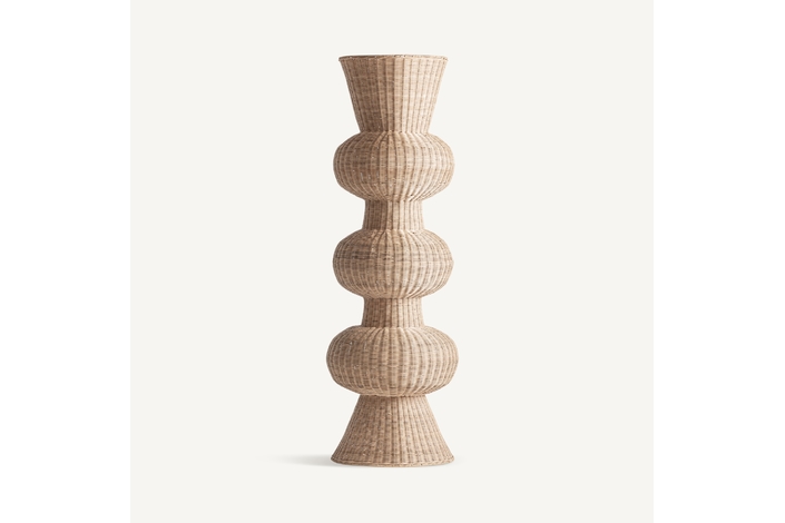 Lámpara de pie de estilo boho, fabricado en ratán en color marrón.