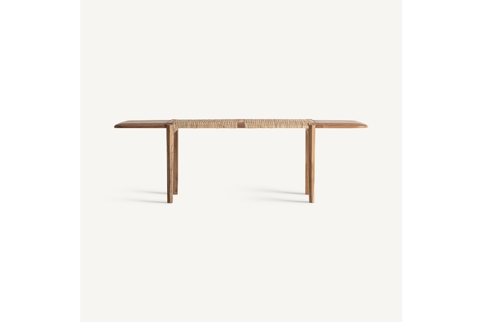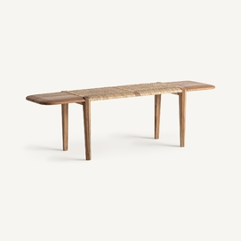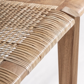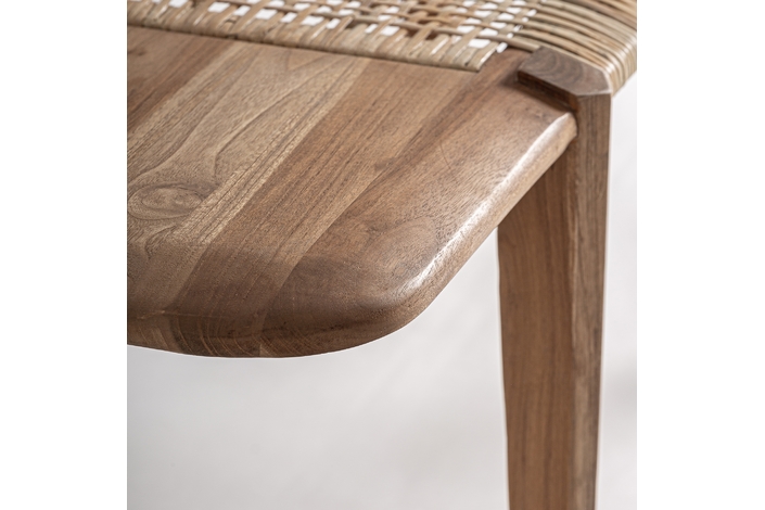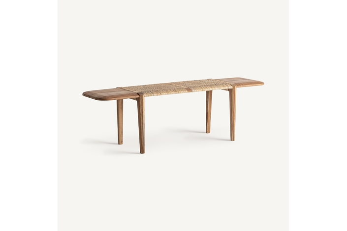 Banco, fabricado en madera de teka en color marrón.