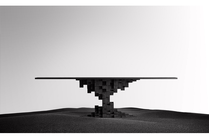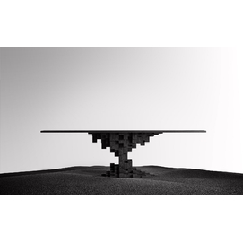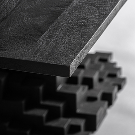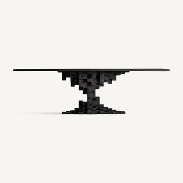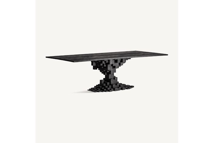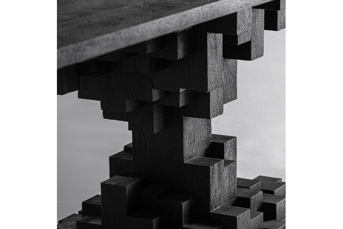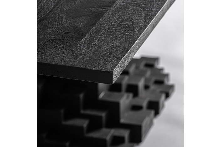 Mesa comedor Pètria de estilo contemporáneo, fabricado en madera de mango en color negro con acabado arenado.