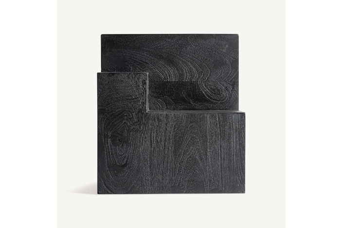 Mesa auxiliar Pètria de estilo contemporáneo, fabricado en madera de mango en color negro con acabado arenado.