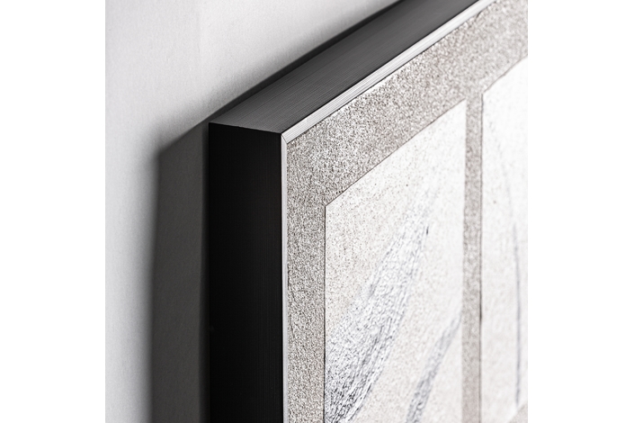 Lienzo, de estilo contemporáneo. Fabricado en lienzo, en color blanco, combinado con madera de pino, en color negro.