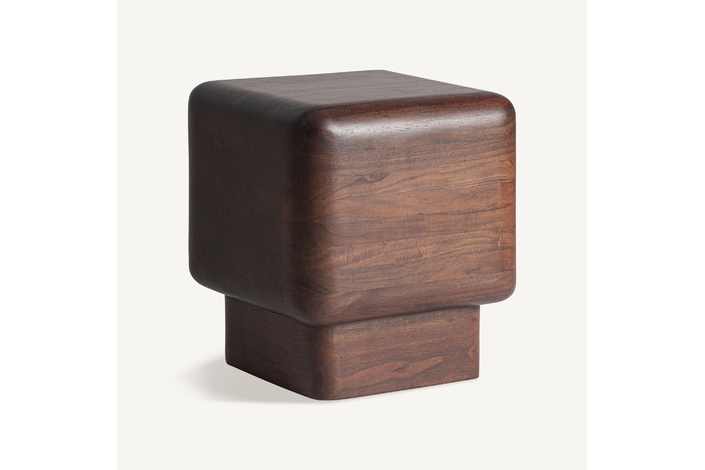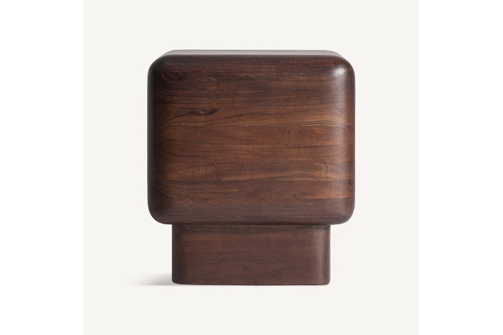 Mesa auxiliar, fabricado en madera de acacia en color marrón.