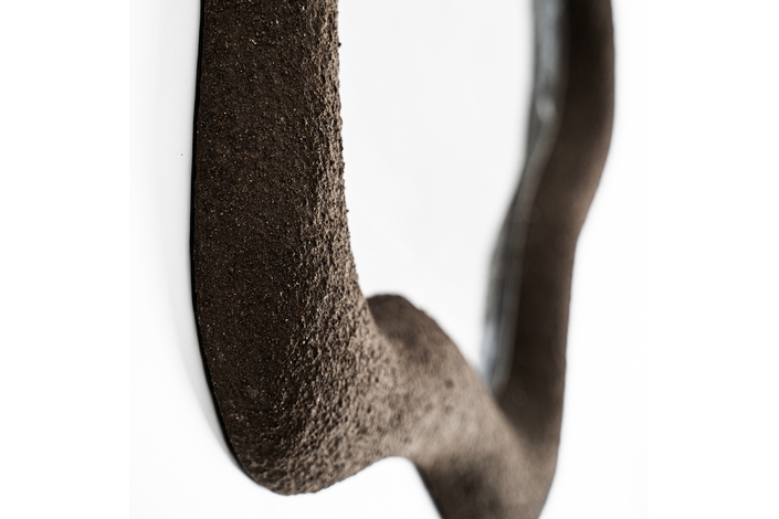 Espejo de estilo contemporáneo, fabricado en resina en color marrón.