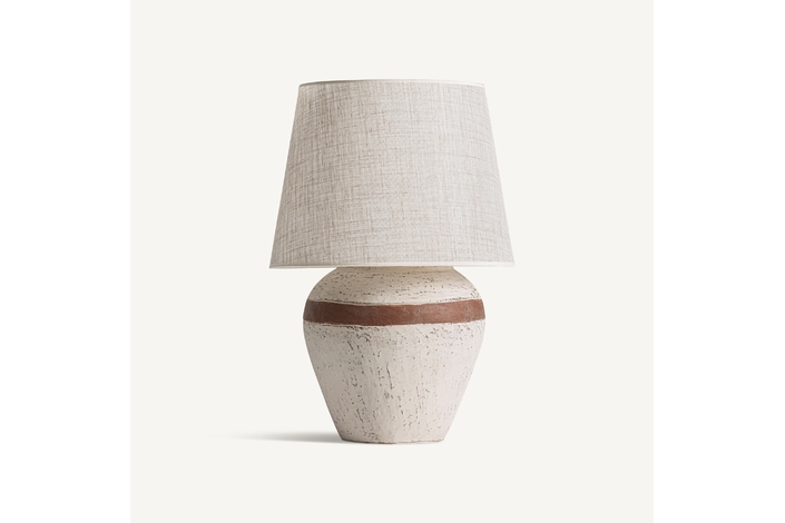 Lámpara de sobremesa, fabricado en terracota, combinado con lino.
