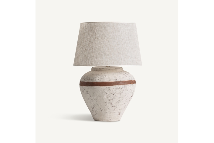 Lámpara de sobremesa, fabricado en terracota, combinado con lino.