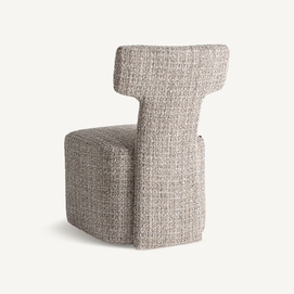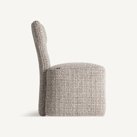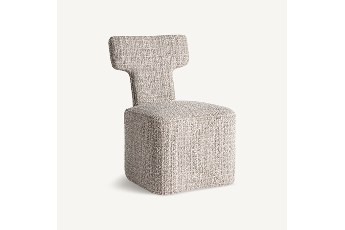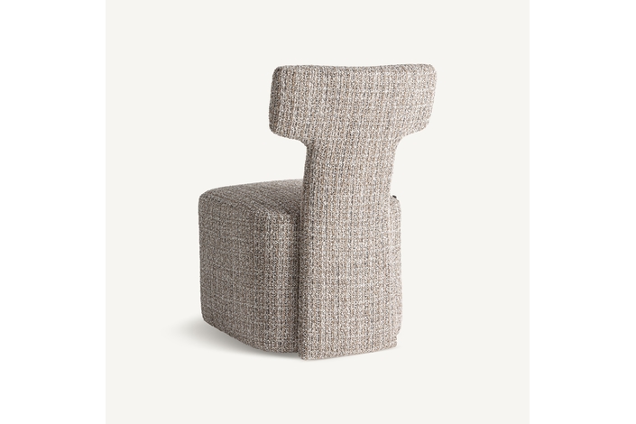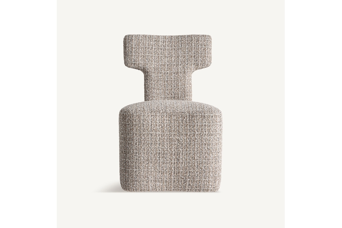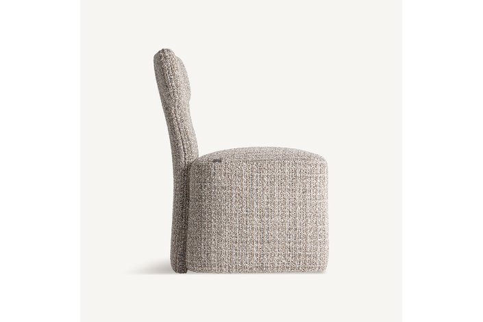 Silla, fabricado en poliéster en color tonos neutros con acabado chenilla, combinado con madera de pino y espuma.