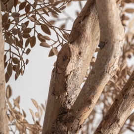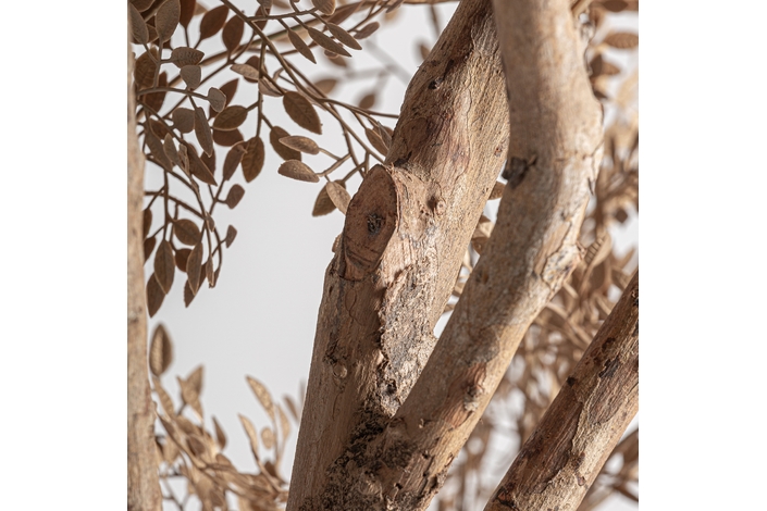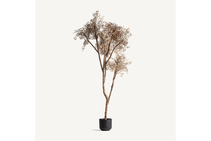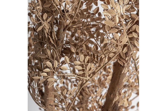 Planta Olivo de estilo clásico, fabricado en polietileno en color tonos en marrón, combinado con polipropileno en color marrón y madera.