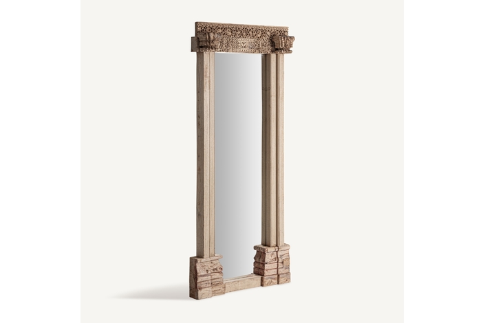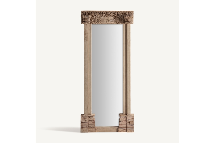 Espejo, fabricado en madera de teka en color marrón.