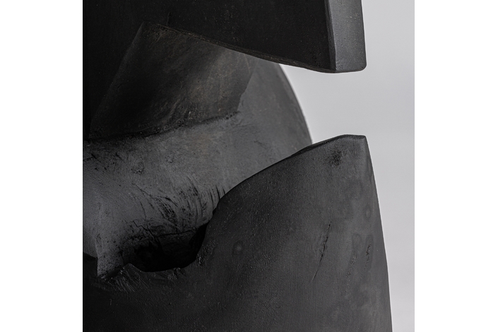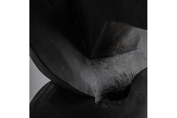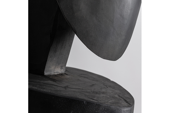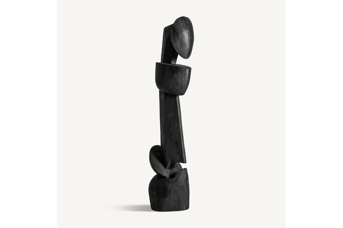 Escultura Harper de estilo contemporáneo, fabricado en madera de teka en color negro con acabado mate.