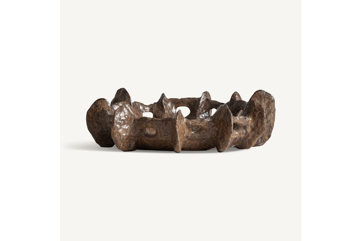 Centro de mesa, fabricado en cerámica en color marrón.