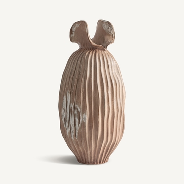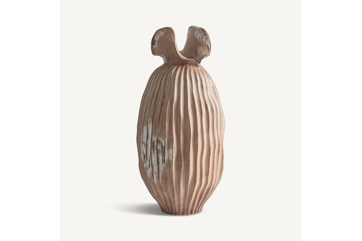 Jarrón, fabricado en cerámica en color marrón claro.