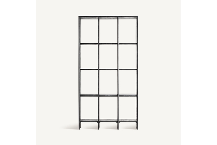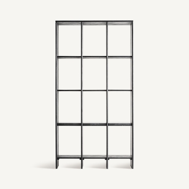 Estanteria Nara de estilo contemporáneo, fabricado en madera roble en color negro, combinado con mármol en color negro.