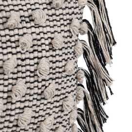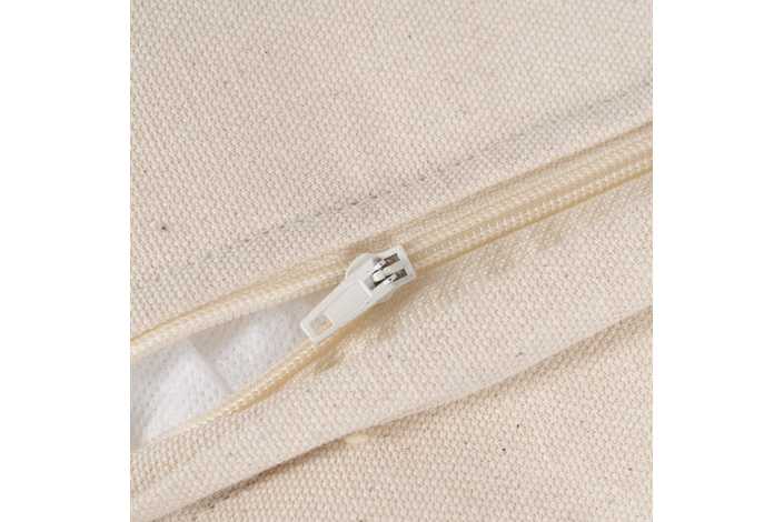 Material: 70% algodón, 30% poliéster. Relleno: 100% fibra de poliéster reciclado. Gramaje: 450gm. Lavar con un paño húmedo y jabón neutro. No lavar a máquina. Con cremallera.