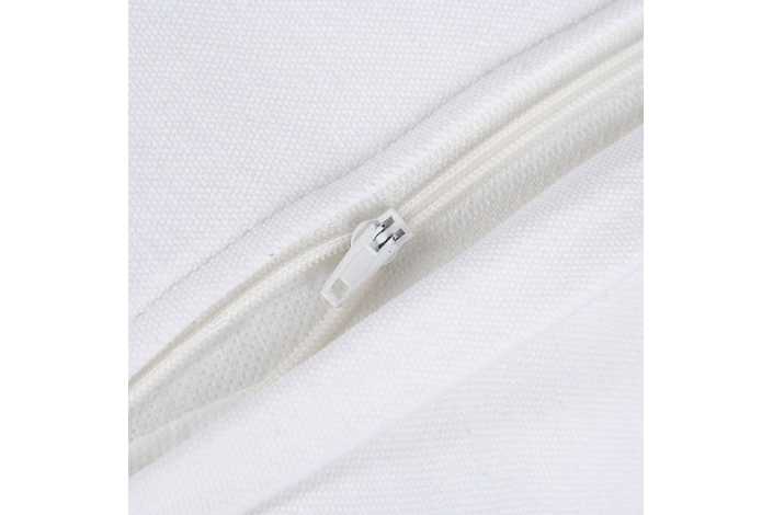 Material: 70% algodón, 30% poliéster. Relleno: 100% fibra de poliéster reciclado. Gramaje: 450gm. Lavar con un paño húmedo y jabón neutro. No lavar a máquina. Con cremallera.