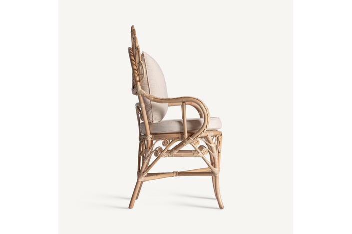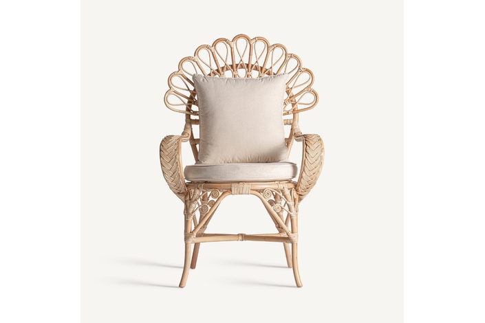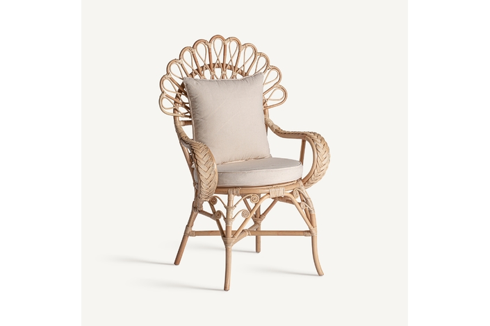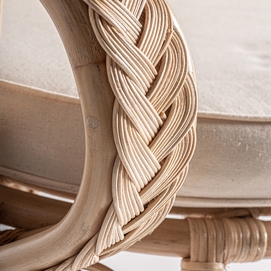 Sillón nulvi, en color marrón, de estilo contemporáneo. Fabricado en ratán, combinado con algodón.