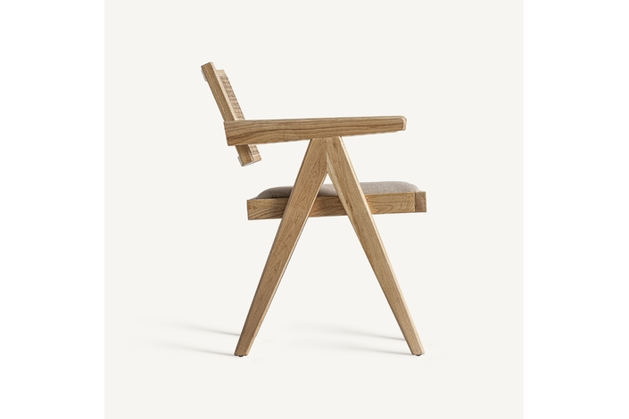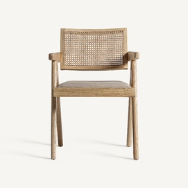 La Silla Cieza de VICAL home es sinónimo de elegancia y comodidad. Con dimensiones de 55x63x82cm, esta silla combina la belleza natural de la madera de olmo con la comodidad del ratán y el lino. Su diseño con reposabrazos no solo añade un elemento práctico, sino que también infunde un aire de sofisticación clásica en cualquier espacio.