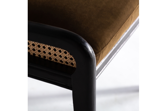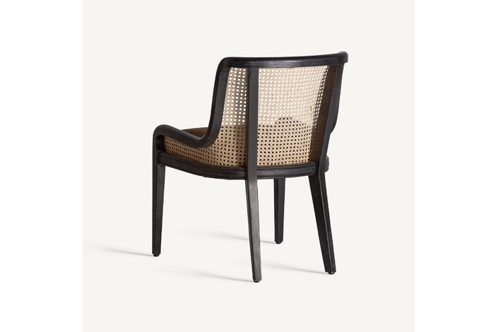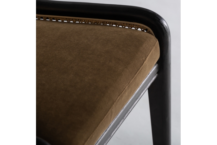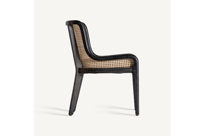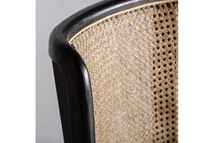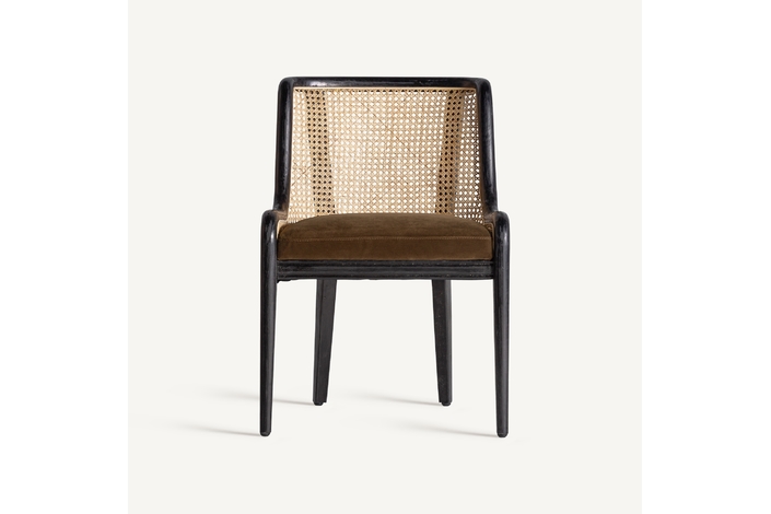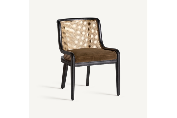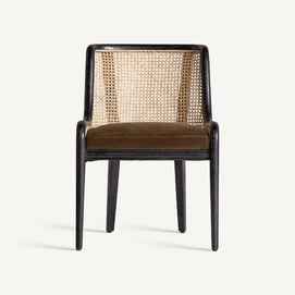 Exalta tu decoración con la Silla Velburg de VICAL home. Dimensionada en 54x58x77cm, esta pieza de arte combina el ratán y madera de caucho con un sofisticado acabado negro. En la silla negra con ratán, el asiento de terciopelo ofrece una experiencia confortable, mientras su robustez garantiza durabilidad. Perfecta para interiores que buscan unir elegancia y comodidad.