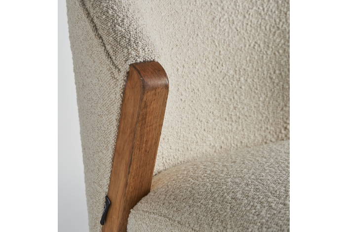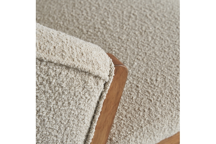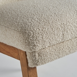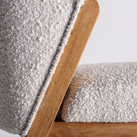 La colección bouclé es sinónimo de comodidad, suavidad y confort. La silla bouclé está elaborada con algodón bouclé y madera de pino, dos tendencias que el año pasado vinieron fuerte y que este año seguimos viendo en los rincones más especiales de los hogares.