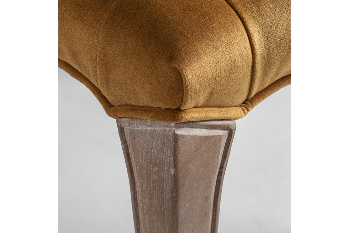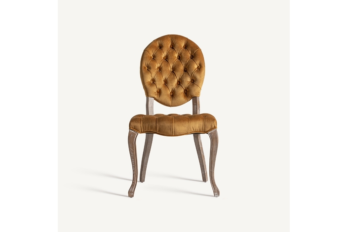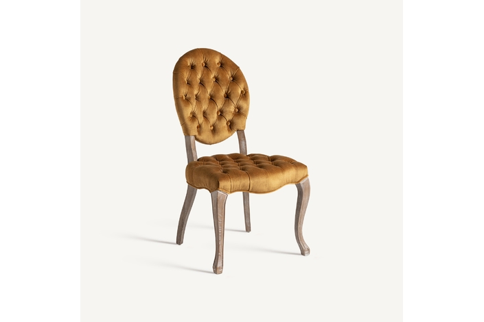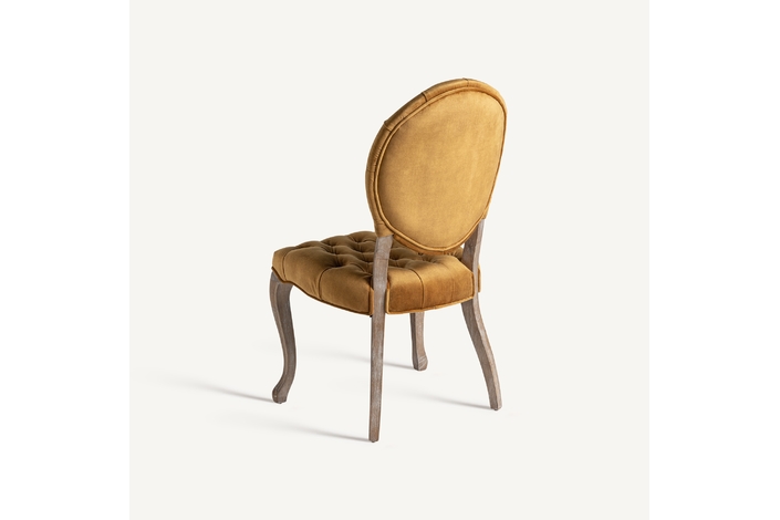 Silla jena, en color mostaza, de estilo provenzal. Fabricado en madera de abeto, combinado con terciopelo y espuma.