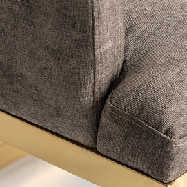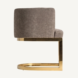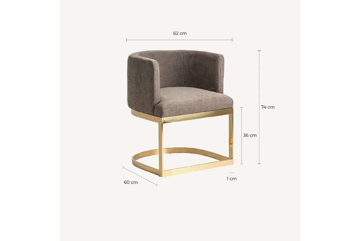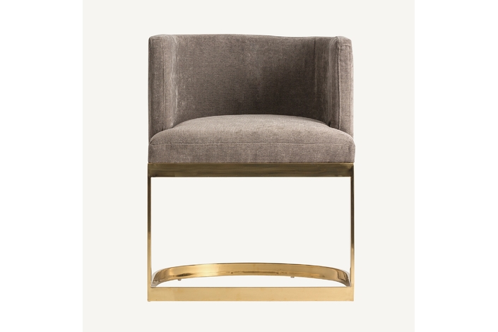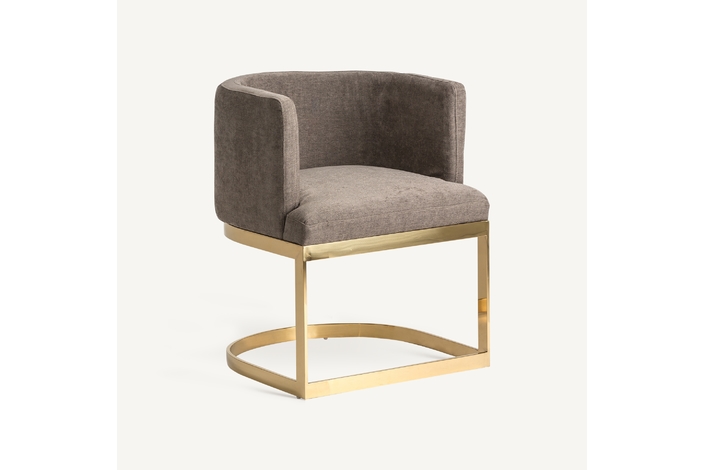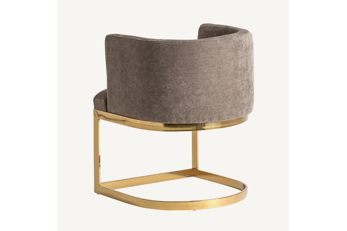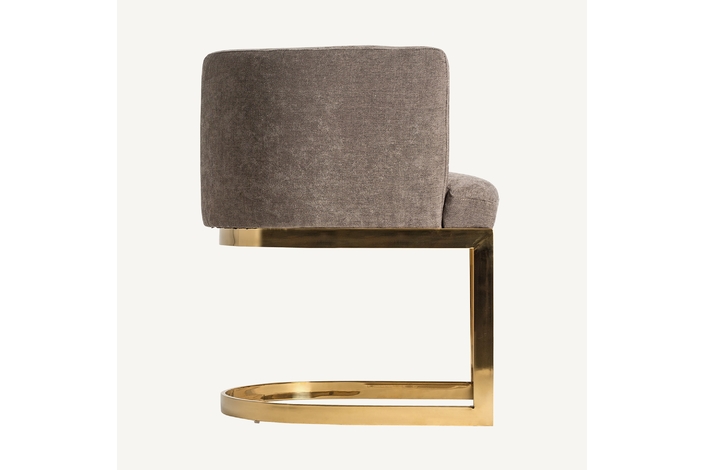 Silla betliar, en color gris/oro viejo, de estilo art deco. Fabricado en poliéster, combinado con acero y madera dm. Relleno: espuma.