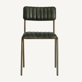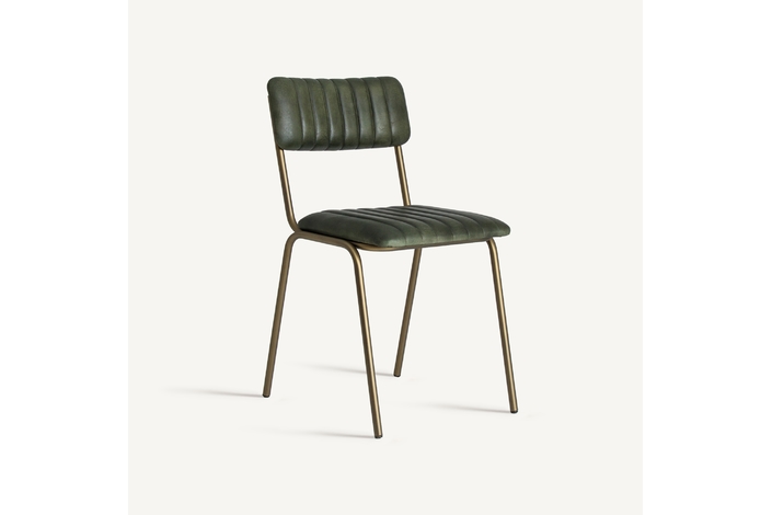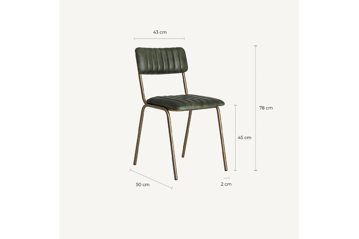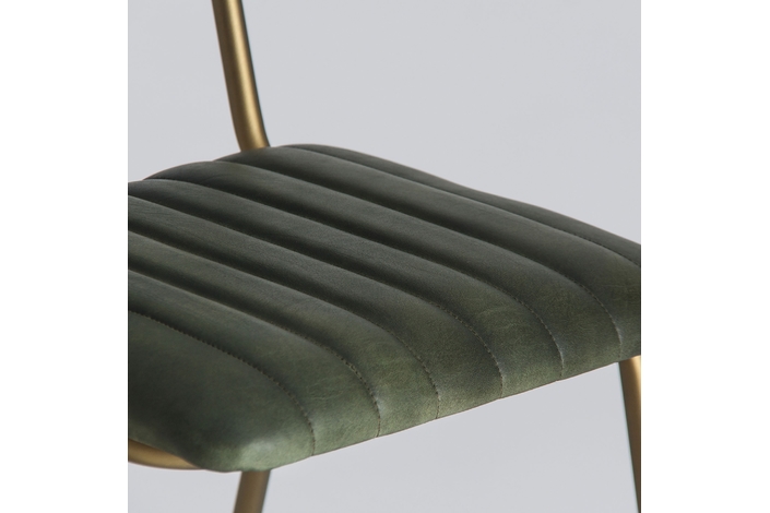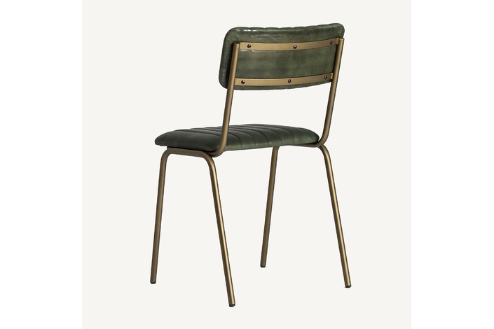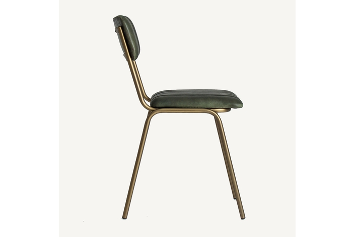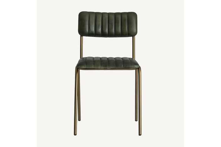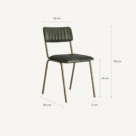 La Silla Chadron de VICAL home en tonos verde y oro ofrece una experiencia estética sin igual. Construida con hierro y cuero de cabra, esta silla de 46x49x78cm no solo destaca por su confort, sino también por su personalidad. La silla de cuero verde es la elección perfecta para quienes buscan diferenciar sus espacios.