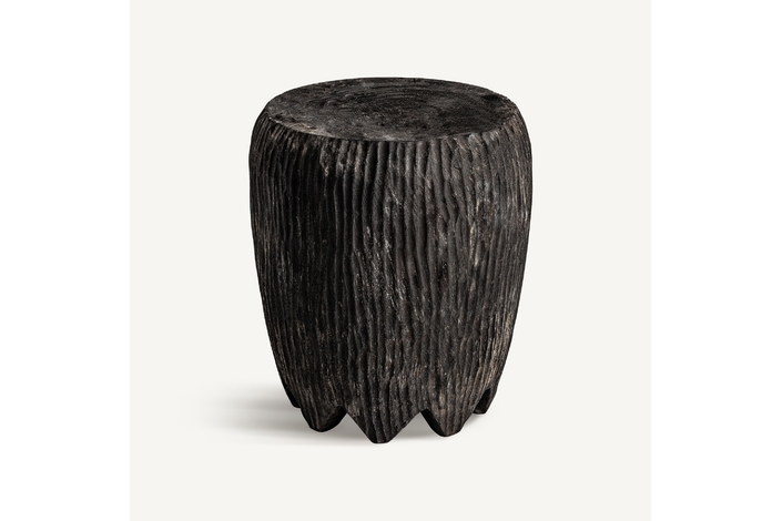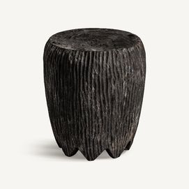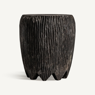 Mesa auxiliar kepoi, en color negro envejecido, de estilo étnico. Fabricado en madera suar.