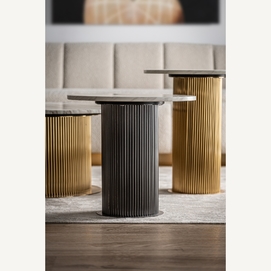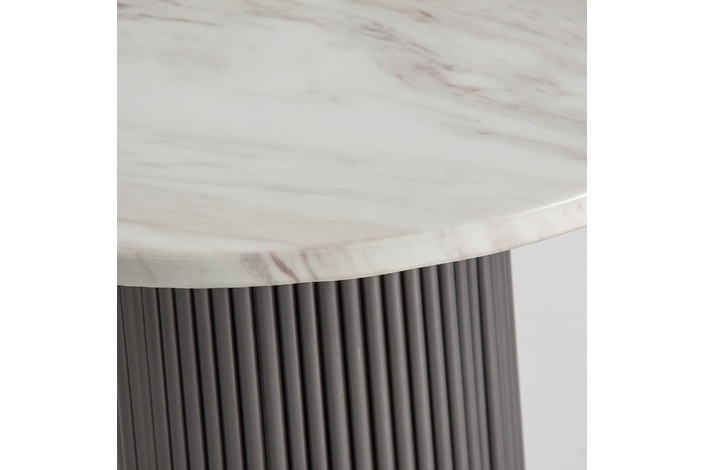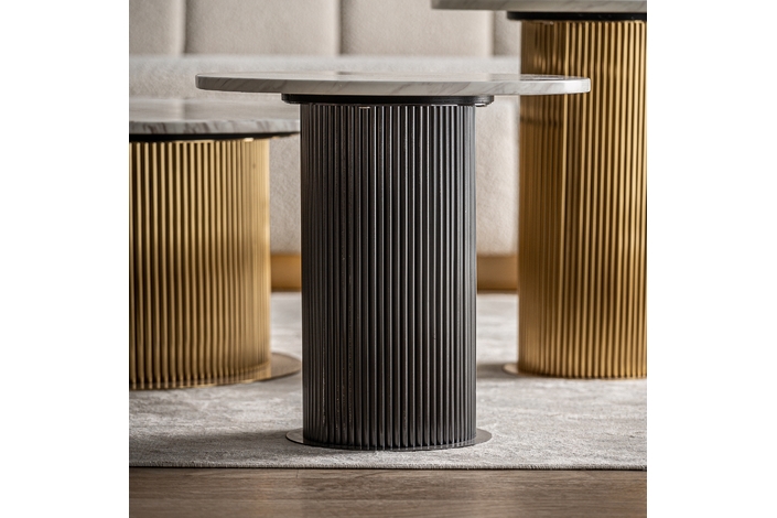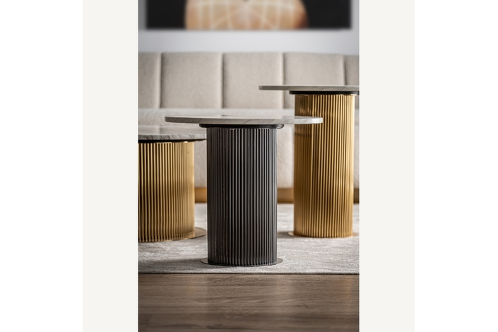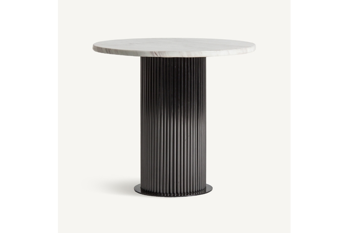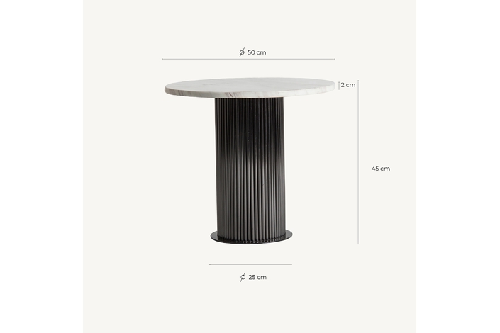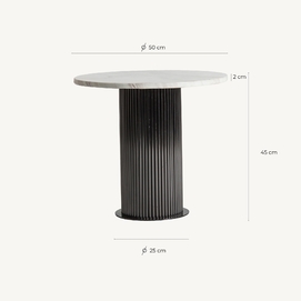 La Mesa Auxiliar Coen de VICAL home es la definición de diseño atemporal. Fabricada en acero blanco/negro y complementada con mármol sintético, esta mesa de 50x50x46cm eleva cualquier espacio. Su estructura robusta y diseño redondo hacen de la mesita auxiliar negra con mármol una pieza esencial para un interior moderno y sofisticado.