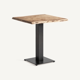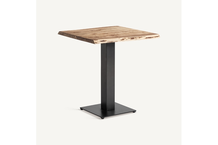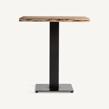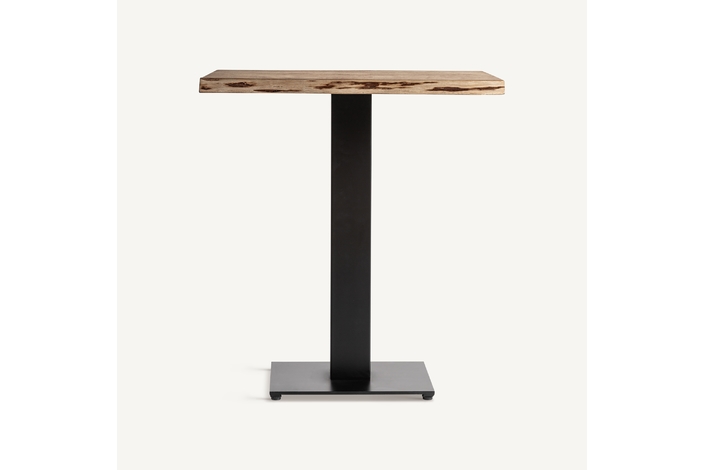 Mesa bar tinjat, en color negro/marrón, de estilo industrial. Fabricado en madera de acacia, combinado con hierro. Producto desmontable.