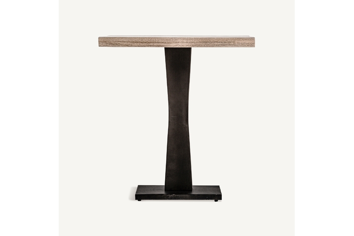 Mesa bar bugle, en color negro/natural, de estilo industrial. Fabricado en madera de mango, combinado con hierro. Producto desmontable.