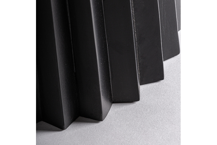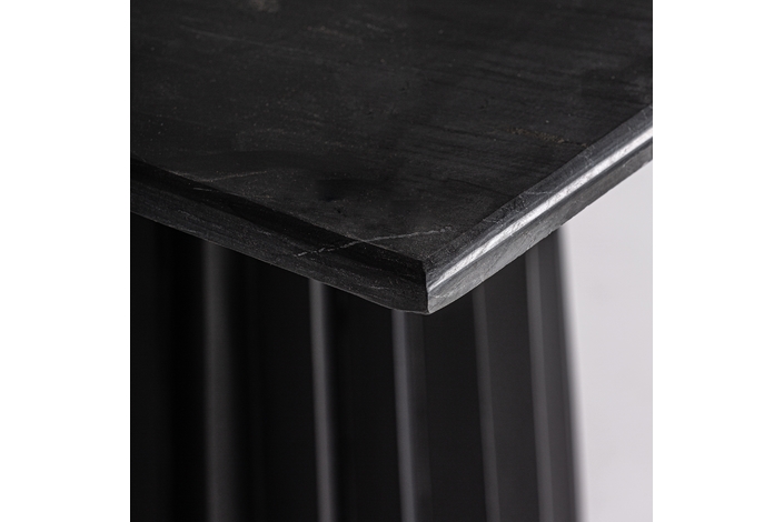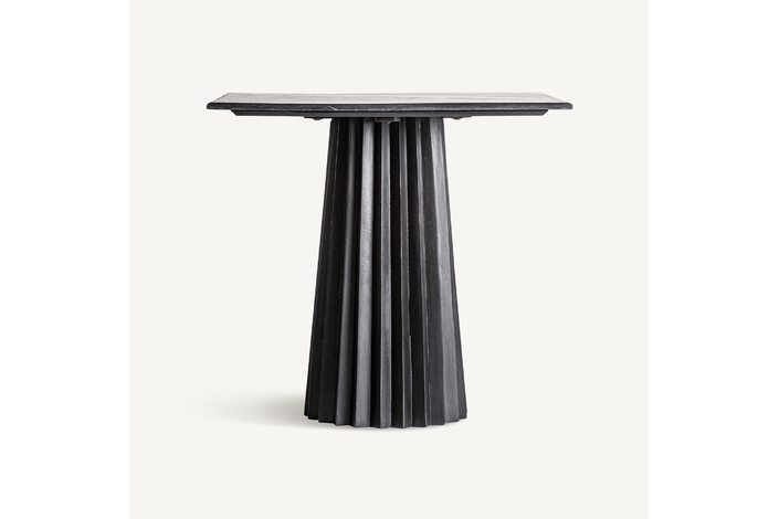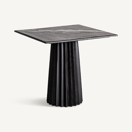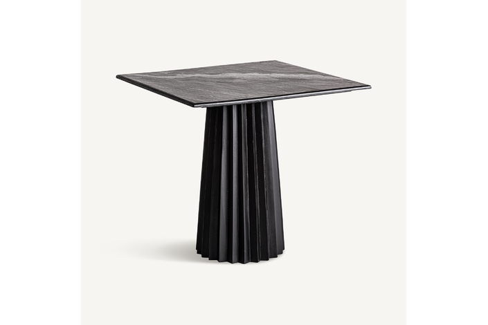 Mesa bar cuadrada plissé wood, en color negro, de estilo art deco. Fabricado en madera de mango, combinado con mármol mate. Producto desmontable.